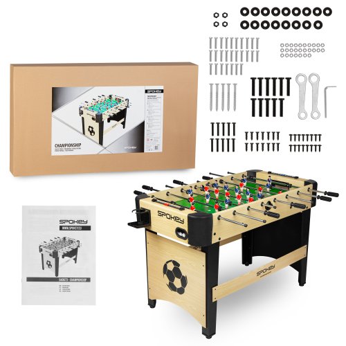 Pri výrobe Spokey CHAMPIONSHIP bola venovaná maximálna pozornosť všetkým detailom. Vďaka tomu sa hra stolného futbalu stáva vzrušujúcou, dynamickou a návykovou. Konfigurácia usporiadania hráčov je 1 brankár, 2 obrancovia, 5 záložníkov a 3 útočníci.
