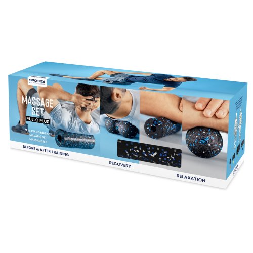 Masážna sada RULLO PLUS je určená na účinnú masáž a regeneráciu svalov. Obsahuje masážny valec s rozmermi 33 x 14 cm, mini valček s rozmermi 15 x 5,3 cm a dve masážne loptičky 8 cm a 16 x 8 cm. Vďaka použitiu odolnej peny EPP si sada zachováva svoju štruktúru a odolnosť aj pri intenzívnom používaní. Je perfektný na automasáž, jogu, Pilates alebo na uvoľnenie svalov po silovom tréningu.