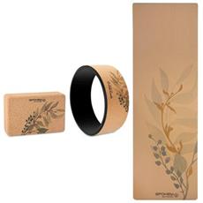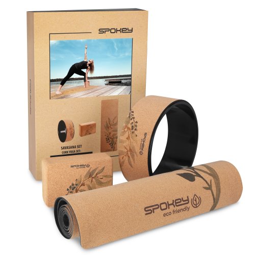 Korkový jóga set Spokey SAVASANA sa skladá z podložky, bloku a kruhu