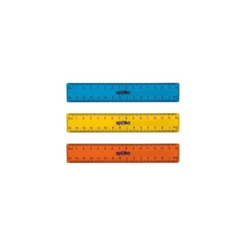 Ploché, základné pravítko s predtlačenou stupnicou s dĺžkou 15 cm. Praktická veľkosť pre školský peračník. Skosená hrana pre presnejšie a pohodlnejšie rysovanie. • mierka: 15 cm • materiál: pevný a odolný polystyrén • predtlačená stupnica • mix farieb: žltá, modrá, oranžová
