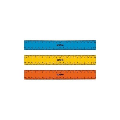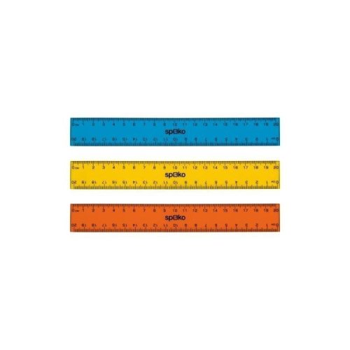Ploché pravítko s predtlačenou stupnicou s dĺžkou 20 cm. Skosená hrana pre presnejšie a pohodlnejšie rysovanie. • mierka: 20 cm • materiál: pevný a odolný polystyrén • predtlačená stupnica • mix farieb: žltá, modrá, oranžová