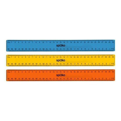 Ploché pravítko s predtlačenou stupnicou s dĺžkou 30 cm. Skosená hrana pre presnejšie a pohodlnejšie rysovanie. • mierka: 30 cm • materiál: pevný a odolný polystyrén • predtlačená stupnica • mix farieb: žltá, modrá, oranžová