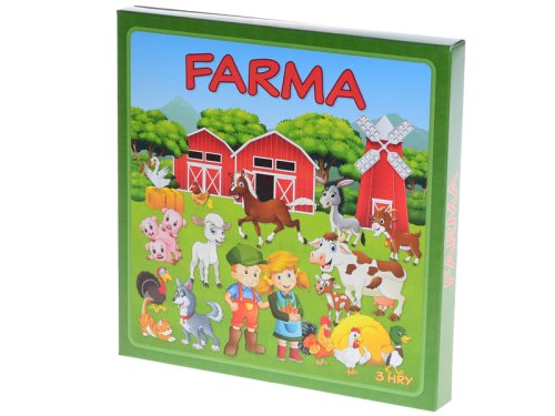 Pomocou týchto hier deti získavajú veselým a hravým spôsobom nové poznatky o rastlinách a zvieratkách žijúcich na farme. Hry rozšíria deťom vedomosti o prírode a zlepšia im logické myslenie. Súprava ukrýva tri hry - Čierny Peter, Pexeso a Domino. Obsahuje 64 ks obrázkových kartičiek. Určené pre deti vo veku od 3 rokov.