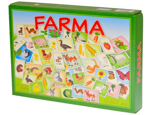 Pomocou týchto hier deti získavajú veselým a hravým spôsobom nové poznatky o rastlinách a zvieratkách žijúcich na farme. Hry rozšíria deťom vedomosti o prírode a zlepšia im logické myslenie. Balenie obsahuje: 106ks obrázkových kartónových kariet, pexeso a návod k hrám.