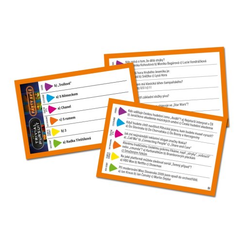 Obľúbená vedomostná hra Trivial Pursuit v zábavnej „Party“ verzii. Obsahuje jednoduchšie pravidlá, rýchlejší priebeh hry a nové herné možnosti, ktoré pridávajú dynamiku a napätie. Hráči odpovedajú na otázky z rôznych oblastí a snažia sa získať farebné kliny čo najrýchlejšie. Ideálne pre rodinné večery aj stretnutie s priateľmi. Obsahuje slovenské pravidlá.
