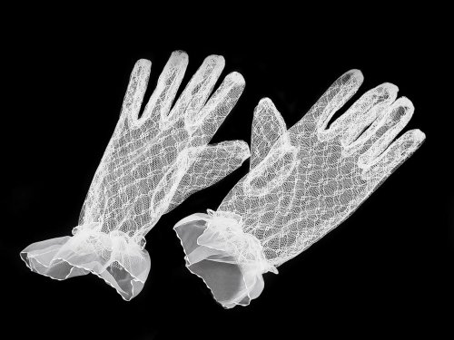 Elegantné krajkové rukavice predstavujú dokonalý doplnok pre každú slávnostnú príležitosť. Výborne sa prispôsobí svojej majiteľke, zápästie majú ozdobené volánikom. Vďaka všitej pruženke perfektne držia - neskĺzavajú. Krátke rukavičky nevyžadujú nutne veľkú večernú róbu ako ich dlhý variant. Využijete ich aj pri letných večerných párty, na čajové večierky a pod. Sú ideálne na tanečné večery. Skvele doplnia večerné šaty alebo koktailové outfity.
