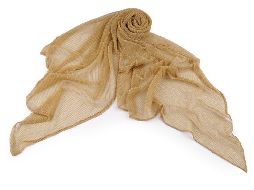 Spoločenský šál pretkaný lurexom je veľmi elegantný. Je vzdušný a splývavý, polopriesvitný. Má jemne plisovanú štruktúru, vďaka lurexovým vláknam a ozdobným nitkám sa efektne trblietajú. S týmto spoločenským doplnkom budete stredobodom pozornosti, pôsobí veľmi luxusne, zdôrazní vašu krásu a výnimočnosť. Upozorňujeme zákazníkov, že zloženie na štítkoch sa môže líšiť, skutočné zloženie je polyamid a lurex.