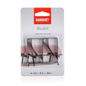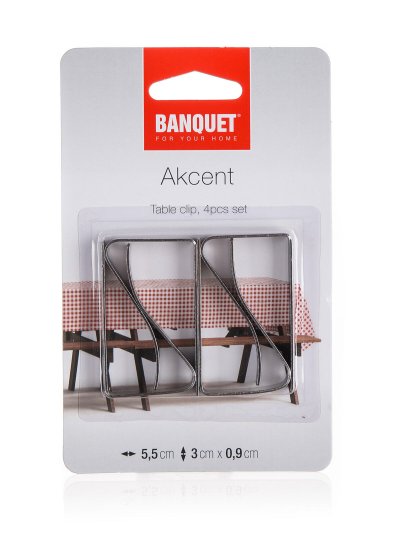 Spony na obrus AKCENT slúžia na uchytenie a napnutie obrusu na dosku stola.