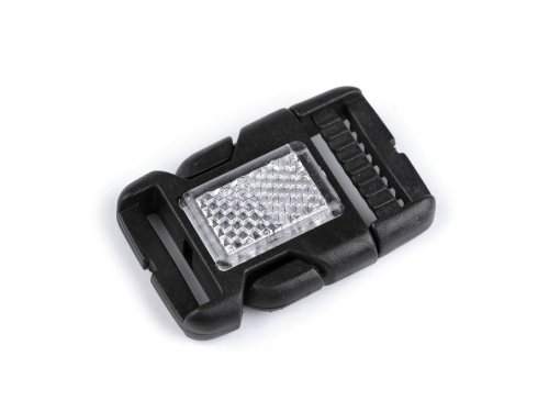 Plastová spona (trojzubec) má odrazku pre lepšiu viditeľnosť za šera, dažďa či tmy. Je vhodná na výrobu obličkových opaskov, tašiek, batohov apod. Využijete ju tiež ako zapínanie pracovných lacláčov. Rozmery odrazky sú 18 x 27 mm.