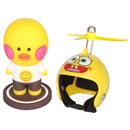 Štýlovo vyzerajúca dekoračná kačička Spongeduck vykúzli úsmev každému dieťaťu. Postavička s výškou 9 cm ozdobí každú poličku, stôl alebo palubovku auta. Vďaka nalepovaciemu štítku na spodnej časti postavičky, môžete kačičku pevne pripevniť na spomínané miesta. Postavičke môžete zložiť alebo nasadiť helmu s vrtuľou. Helma je s motívom žltej morskej huby z úspešného animovaného seriálu. Nazbierajte celú sadu kačičiek, ktoré nájdete v našej širokej ponuke. Nie je vhodné pre deti do 6 rokov. Parametre: rozmery: 9 x 4 cm hmotnosť: 56 g materiál: PVC, ABS