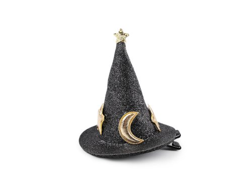 Spona s čarodejníckym klobúkom poteší malé aj veľké kúzelníčky. Klobúk sa vďaka glitrom jemne trblieta. Spona má zúbky, v účese perfektne drží. Nemusí sa nosiť len vo vlasoch, môžete si ju ozdobne pripnúť na tašku, ako dekoráciu na halloween a pod.