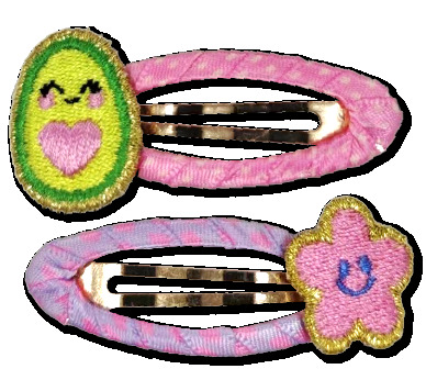 Súprava dvoch detských sponiek do vlasov s motívom avokáda a kvety, navrhnutá pre pevné a pohodlné uchytenie prameňov vlasov. Veselý a hravý dizajn dodáva účesu šmrnc, pričom sponky držia vlasy na mieste bez nepríjemného ťahania či tlačenia. každodenné nosenie.