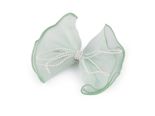 Veľká spona s textilnou mašľou nádherne ozdobí účes na všedný deň aj slávnostnú udalosť. Mašľa je elegantná, ozdobená perlovou retiazkou. Je ušitá z vrapovanej monofilovej stuhy s jemným ligotom, vďaka všitému silónu perfektne drží tvar. Spona má kvalitné celokovové prevedenie, vo vlasoch pevne drží vďaka zúbkom.
