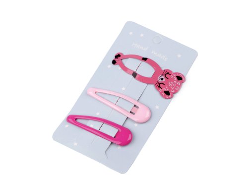 Sada tematických sponiek pukačiek poteší malé aj väčšie slečny. Na každej karte sú 3 sponky. Jedna je s motívom, ďalšie dve sú rovné, rôzne farebné, aby navzájom všetky sponky ladili. Sponky sú vyrobené z kvalitného materiálu, ktorý dlho drží svoj tvar, funkčnosť aj farby. Karta je opatrená výsekom na zavesenie a vystavenie na predajný stojan.