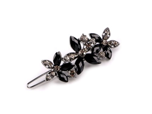 Elegantná sponka do vlasov s brúsenými kamienkami v tvare kvetov je dokonalým doplnkom na oživenie každého účesu. Je vyrobená z kvalitného bižutérneho kovu, na zadnej strane má malé zúbky, vo vlasoch dobre drží. Využijete ju na rôzne spoločenské akcie, ale aj na bežné nosenie, zaujímavo ozdobí váš účes. Je umiestnená na plastovej karte, ktorá je vhodná na zavesenie na predajný stojan.