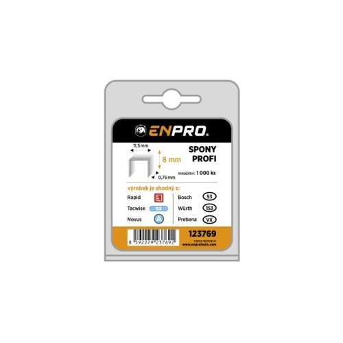 spony PROFI ENPRO veľmi kvalitné oceľové spony do sponkovačky typ spôn: 53 šírka spôn: 11,5 mm hrúbka spôn: 0,75 mm vhodné pre: 123754,123755,123747,123753