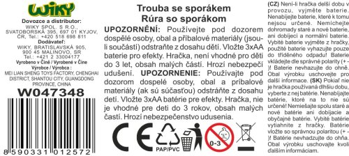 Sporák a trouba s efekty. Velikost 14 cm. Vydává světelné a zvukové efekty. Baterie 3xAA nejsou součástí balení. Přesné rozměry 11x9x14 cm.