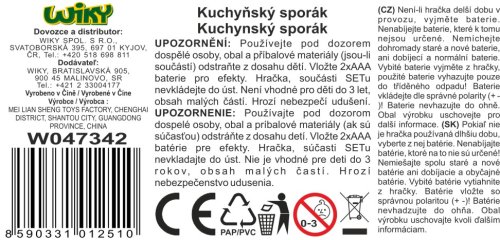 Sporák s efektmi. Veľkosť 15 cm. Vydáva svetelné a zvukové efekty. Batérie 2xAAA nie sú súčasťou balenia. Presné rozmery 11x7x15 cm.