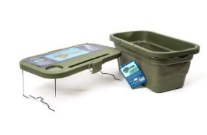 Kempingový skladací stolík, nosnosť až 50 kg, plastové pätky na nohách, puzdro na jednoduché prenášanie, oceľová konštrukcia, doska z lamiel s rozmermi 70 x 70 cm.