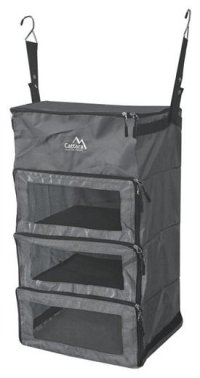 Závesný organizér, 4 police na zips, nosnosť 5 kg, 2 háčiky, skladný a ľahký.