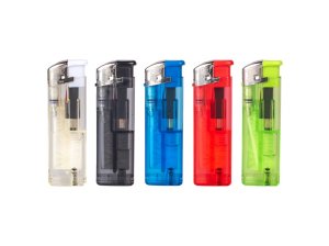 Plniteľný zapaľovač s piezoelektrickým zapaľovaním as reguláciou výšky plameňa.