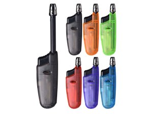 Transparentný zapaľovač piezo Dura. Úzky oválny (cigaretový) tvar zapaľovača.