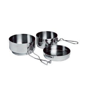 Kempingová sada riadu - ešusy je veľmi ľahká trojdielna sada nerezového riadu.