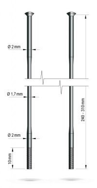 Kvalitný nerezový lúčPrevedenie hlavičky: so zahnutou hlavou Rozmer lúča: 2/1,7/2 mm, hmotnosť: 4,9 g (pri dĺžke L = 260 mm)Materiál: vysoko pevnostná nerezová oceľ SANDVIK T302Použitie: MTB, Trekking, …