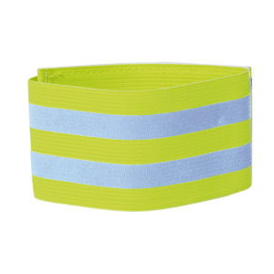 Reflexná elastická páska s 2 striebornými pruhmi, zapínanie na suchý zips.