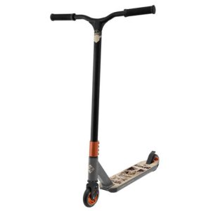 Kolobežka s nosnosťou 100 kg, odporúčaná výška jazdca až 170 cm, pre deti od 9 rokov, rozmer kolies 230 mm, kvalitná odľahčená oceľ, manuálna brzda pri zadnom blatníku, gumové rukoväte.