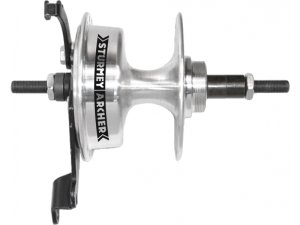 Zadný náboj Sturmey-Archer X-RD s bubnovou brzdou 70 mm a závitom pre skrutkovacie koliesko. Obsahuje priemyselné ložiská Počet dier: 36 Šírka náboja: 119 mm Dĺžka osi: 154 mm Priemer osi: 10 mm Hmotnosť: