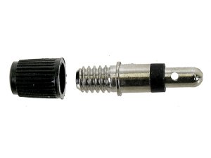 Náhradný ventil na cyklo duše s tesniacou gumičkou, "o" krúžkom a plastovou čiernou čiapočkou Telo ventilu: nikel