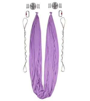 Základné vybavenie na praktizovanie vzdušnej (aerial) jogy v domácom prostredí.