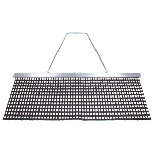 Z dvoch kusov v pevnom a vonkajším vplyvom odolnom hliníkovom ráme, tri rady tvrdých štetín na antukového dvorca. Šírka 270 cm.