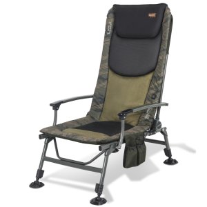 Rybárske a kemping luxusné kreslo s anatomicky tvarovaným operadlom a polstrovaným vankúšom v páčivom CAMO prevedení matraca.