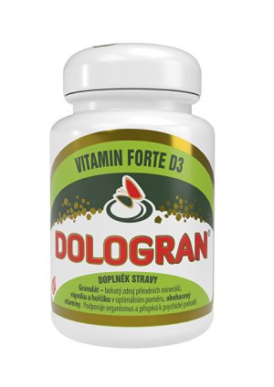 Dologran Vitamín FORTE D3 obsahuje optimálnu kombináciu minerálov a vitamínov, ako sú B1 (tiamín), B6 (pyridoxín), vitamín E, beta-karotén a Acerola.