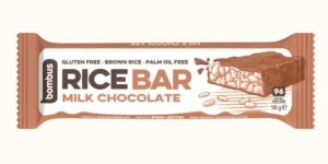 Tyčinka z hnedej ryže s mliečnou čokoládou. Zloženie: mliečna čokoláda 68% (belgická) [kakaové maslo*, cukor, sušené plnotučné mlieko, kakaová hmota*, emulgátor: sójový lecitín, prírodná vanilková aróma], celozrnná …