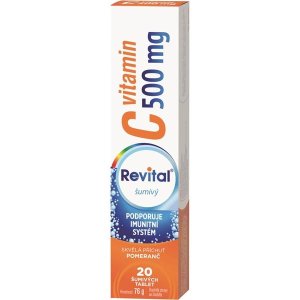 Revital C vitamín 500 mg Posilňuje imunitný systém vysokou dávkou vitamínu C (500 mg) v šumivých tabletách so skvelou príchuťou pomaranča Balenie obsahuje 20 tabliet
