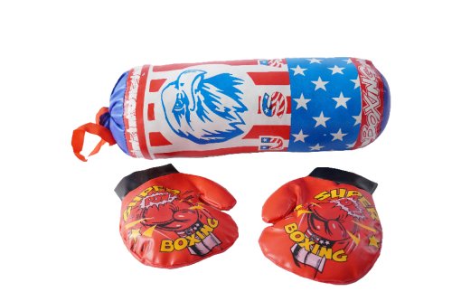 Súprava boxovacieho vreca s rukavicami. Športové vyžitie môže byť aj v detskej izbe. Vrece je možné zavesiť a dieťa môže boxovať.