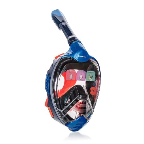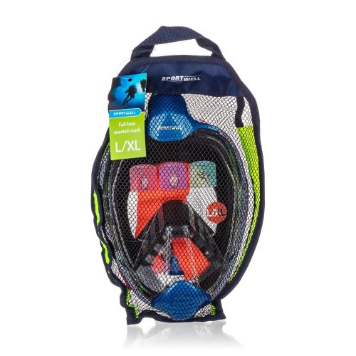Maska celotvárová šnorchlovací SPORTWELL je skvelou pomôckou pre šnorchlovanie vo vode. Celotvárová šnorchlovacia maska pre dospelých. Tvárový priezor z polycarbonátového skla, rám z PC, silikónový tesniaci lem a ústenka, remienok na hlavu: chinlon-spandex-dacron. Veľkosť L/XL, farba: modro-čierna.