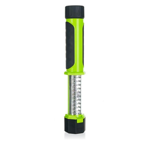 Praktické LED svietidlo v plastovom prevedení. Vďaka dlhej životnosti a odolnosti LED je možné využiť svietidlá nielen v domácnosti, ale aj pre outdoorové aktivity. Napájanie: 3x AA (nie je súčasťou výrobku). Svietidlo má 34 bielych diód, ktoré je možné jednotlivými stlačeniami rozsvietiť v niekoľkých režimoch: 1. stlačenie svieti 4 biele spredu, 2. stlačenie svieti 30 LED z boku, 3. stlačenie vypnuté. Svietidlo je vybavené háčikom na zavesenie a na konci praktickým magnetom.