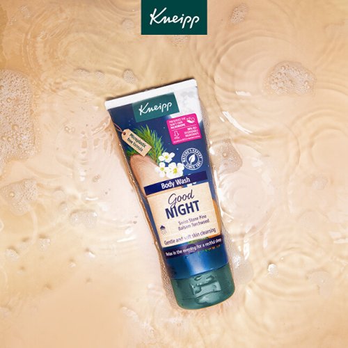 Uvoľňujúca sprcha pre lepší spánok Kvalitný spánok je základom úspešného dňa. Aby sa vám dobre spalo, je potrebné uvoľniť myseľ. A to sa po dni plnom úloh a zážitkov často nedarí. Urobte si čas na krátku sprchu s gélom Kneipp Good Night, ktorý vám s tým pomôže. Obsahuje oleje zo švajčiarskej borovice, indického santalového dreva, cédrového dreva a levandule. Všetky tieto prírodné éterické oleje majú upokojujúce účinky. Po takej sprche zaspíte behom chvíľky. Jemné zloženie sprchového gélu navyše chráni prirodzený kožný mikróbiom.