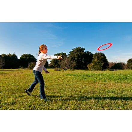 Lietajúci kruh Aerobie Sprint je menšou verziou lietajúceho kruhu Aerobie Pro, s ktorým bol vytvorený svetový rekord zapísaný v Guinessovej knihe rekordov. Lietajúci kruh Aerobie Sprint má obdobne skvelé letové vlastnosti – lieta rovno a 2x ďalej ako bežné lietajúce taniere. Je určený pre menšie priestory (parky, ihriská, pláže, kempy a pod.) ako verzia Pro a odporúča sa pre deti staršie ako 7 rokov. Lietajúci kruh Aerobie Sprint ocenia hráči všetkých úrovní. Vďaka jedinečnej konštrukcii je kruh za letu rovnomerne nadnášaný vztlakovou silou - akoby pri lete kĺzal po neviditeľnej vrstve ľadu. Tento efekt priameho letu funguje aj pri rôznych rýchlostiach hodu. Pretože je okraj kruhu zo zmäkčenej gumy, skvele sa chytá a ľahko sa odráža aj od prípadných prekážok bez toho, aby sa poškodil. Vlastnosti: - lieta 2x ďalej ako bežné lietajúce taniere - mäkký odolný gumový okraj pre ľahké chytanie - priemer 25 cm - vhodný aj pre menšie priestory - hmotnosť 61 g - nepláva vo vode - odporúčaný vek 7+