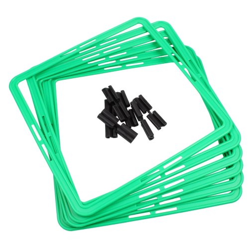 Sada šiestich agility prekážok sa hodí pre športovcov všetkých športových odvetví. Vďaka tejto pomôcke môžete efektívne trénovať rýchlosť a koordináciu dolných aj horných končatín. Sadu môžu využiť aj športové kluby všetkých vekových kategórií. Svoje uplatnenie nájde aj v školách a škôlkach. Štvorec o veľkosti 40 x 40 cm má po každej strane špeciálne otvory na prepojenie spojkami. Zostaviť tak môžete agility dráhu rôznych rozmerov. Doplňte túto pomôcku o ďalšie agility pomôcky a vytvorte tak komplexné agility dráhu . Vybrať si môžete aj z niekoľkých farebných prevedení.