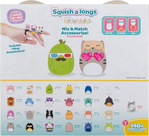 Pripravte sa na novú úroveň zábavy s Mini-Squish, ktoré sú najnovším prírastkom do rodiny hračiek Squishmallows! Sada obsahuje aj prstene na pripevnenie figúrok a ďalšie príslušenstvo.
