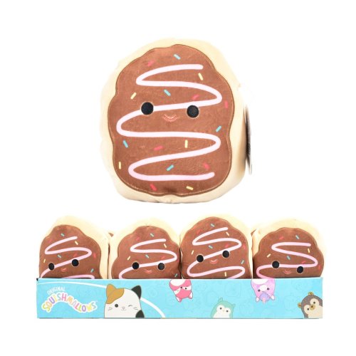 Squishmalllows plyšová šiška Deja 20cm s ružovou polevou a farebným posypom. Koblika Deja je populárna postava z radu Squishmallows, známa pre svoj okrúhly tvar, hebký materiál a roztomilý dizajn jedla.
