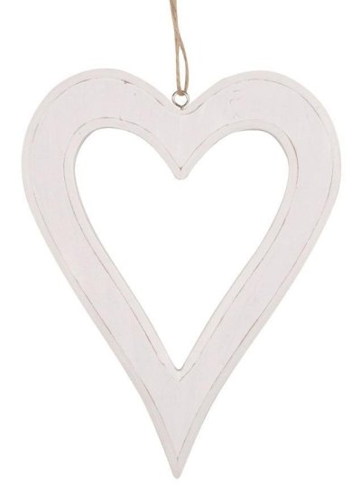 Srdiečko drevené biele na zavesenie 19,5 cm