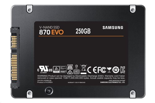 SSD disk Samsung 870 EVO s kapacitou 500 GB a rozhraním SATA 6 Gb/s osahuje maximálnych prenosových rýchlostí až 560 MB/s pri čítaní a 530 MB/s pri zápise dát .