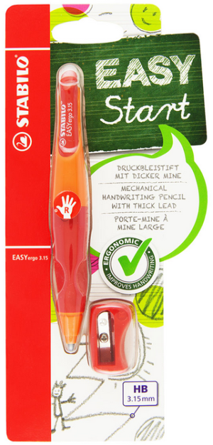jedinečný dizajn a ergonomický tvar tvarovaný úchop je z protišmykového materiálu súčasťou balenia je nelámavá tuha HB a ergonomické strúhadlo priemer tuhy 3,15 mm opätovne naplniteľná tuhami pre STABILO EASYergo 3,15