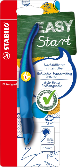 Ergonomický bombičkový roller Stabilo EASYoriginal pero pre ľavákov umožňuje školákom písanie bez škrabania na papieri.